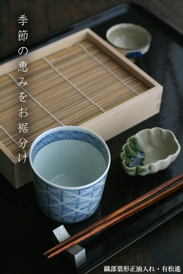 深さのある「織部葉形正油入れ・有松進」は、醤油やたっぷりの薬味入れにおすすめです。